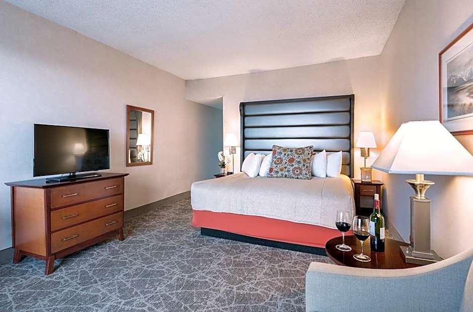 Enjoy your own private balcony overlooking the city, mountains or Cook Inlet. This extra spacious room features a king bed, refrigerator/bar and sitting area. Amenities include a flat-screen TV, coffee maker, iron/ironing board, blackout drapes and complimentary wireless internet.